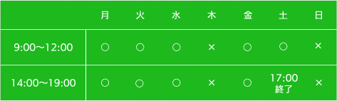 ※土曜日の診療時間は平日と異なりますため、ご注意ください。